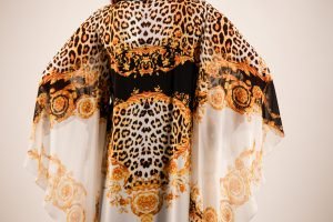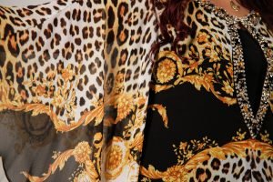 Make a bold statement with the Al-Namir Abaya, a striking piece that exudes confidence and luxury. This abaya features an eye-catching leopard print design, combined with rich gold and black baroque-inspired detailing. The dramatic mix of patterns creates a dynamic and regal look that is sure to turn heads. The flowing, open sleeves and relaxed fit ensure comfort while adding an air of elegance. Perfect for special occasions or when you want to add a touch of glamour to your outfit, the Al-Nimar Abaya is a show-stopping addition to any wardrobe.
