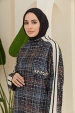 Elevate your casual wardrobe with the Aleyna Tunic, a stylish and contemporary piece that effortlessly combines comfort and flair. This tunic features a rich plaid pattern in shades of navy, brown, and white, creating a timeless look with a modern twist. The design is enhanced by sporty white stripes along the sleeves, adding a dynamic contrast to the classic plaid. A touch of embellishment on the chest pocket adds subtle sparkle, making this tunic perfect for both casual and slightly dressed-up occasions. The relaxed fit and soft fabric ensure all-day comfort, while the high-neck design provides an extra layer of warmth and style.