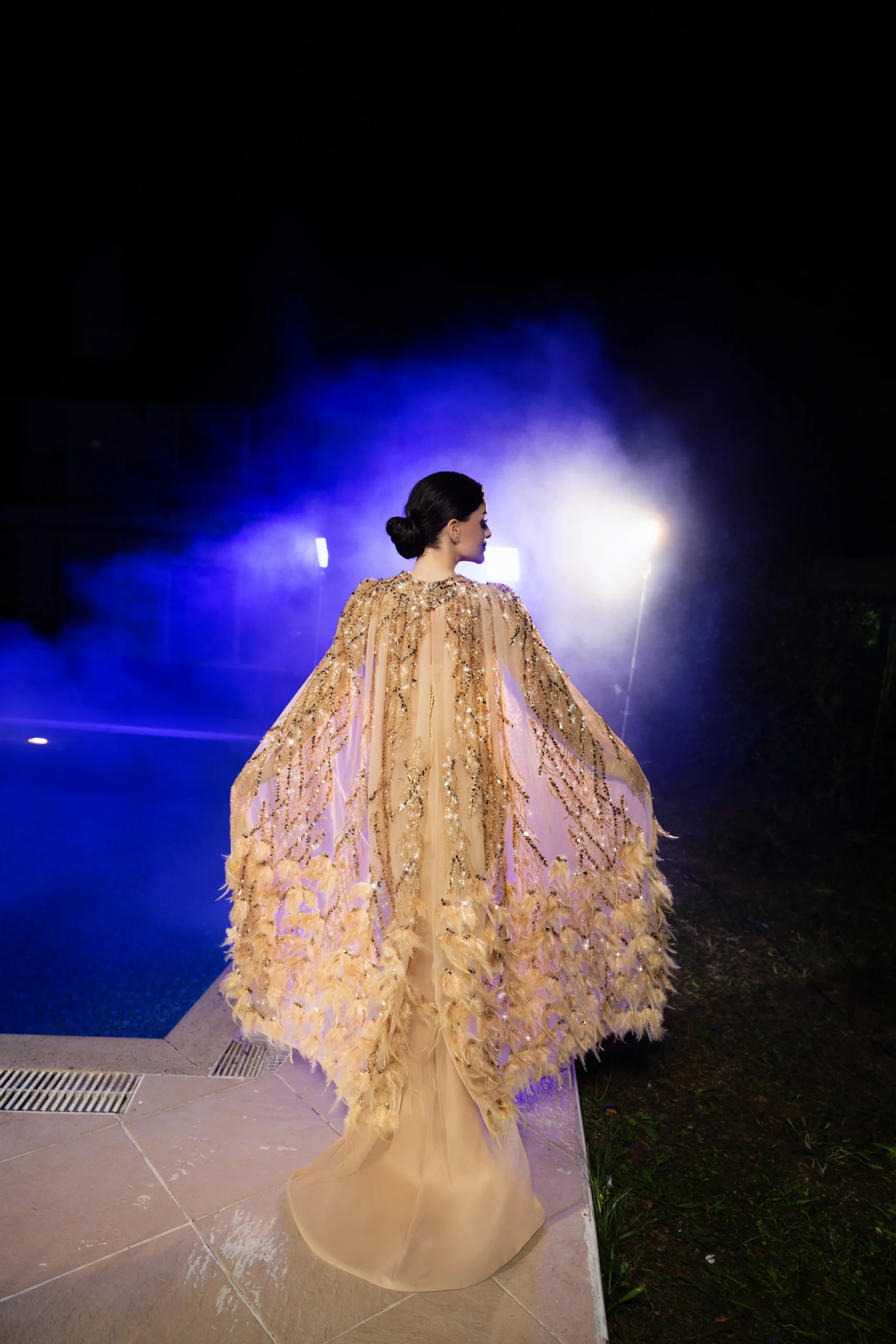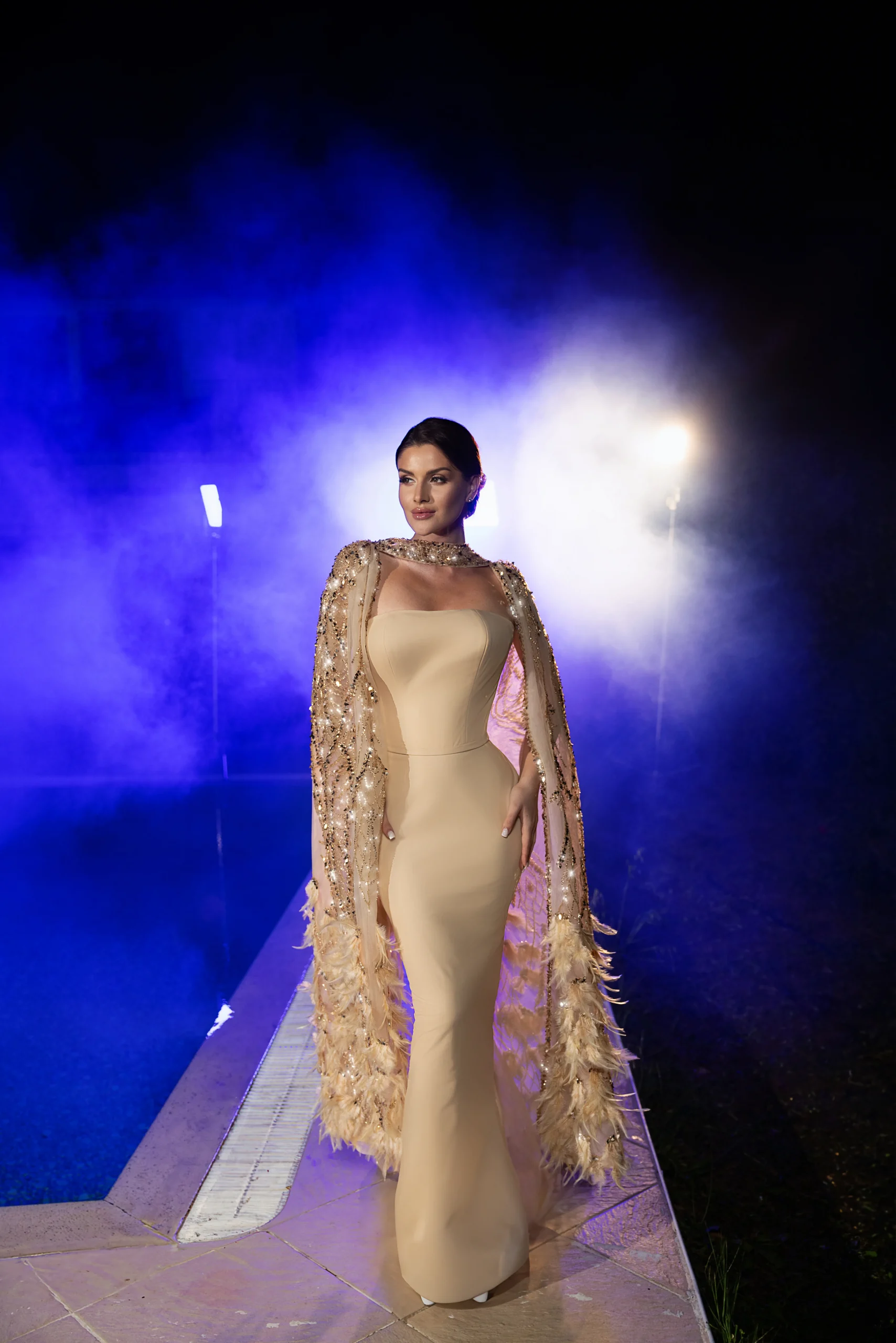 Unleash your inner goddess with the Golden Goddess Evening Dress. This exquisite long gown is crafted from a stunning gold material that exudes sophistication and style. The elegant design includes a flattering neckline and delicate embellishments that add a touch of sparkle. Whether you’re attending a gala, wedding, or red carpet event, this dress promises to make a statement and leave a lasting impression.