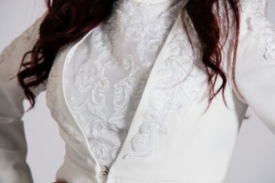 - Overskirt: Draped from the waist for a floral-inspired silhouette