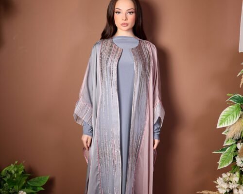 A deep teal one-piece abaya featuring gold sunburst detailing across the front and a smooth satin finish on both the front and back. Designed with a relaxed silhouette and flowing movement, Solara Teal is made for Ramadan evenings, formal gatherings, and special occasions.
