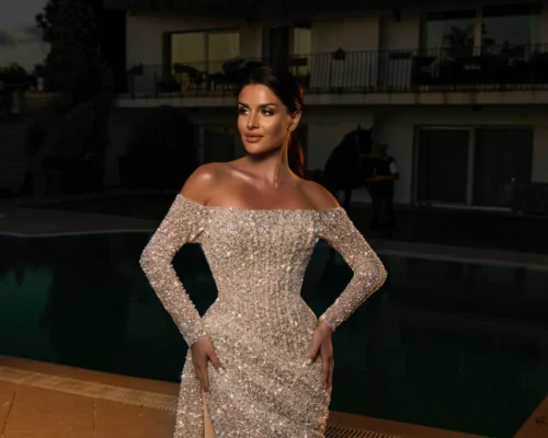 - Detailing: Exquisite embellishments on the shoulders, creating a luxurious focal point